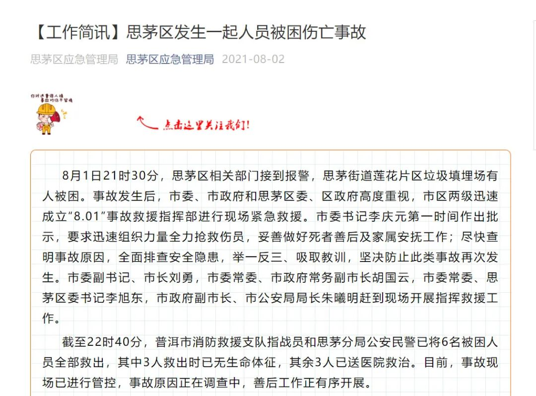 3、有限空間中毒窒息?云南普洱垃圾填埋場(chǎng)事故致5死1傷!環(huán)保圈,2021-08-09