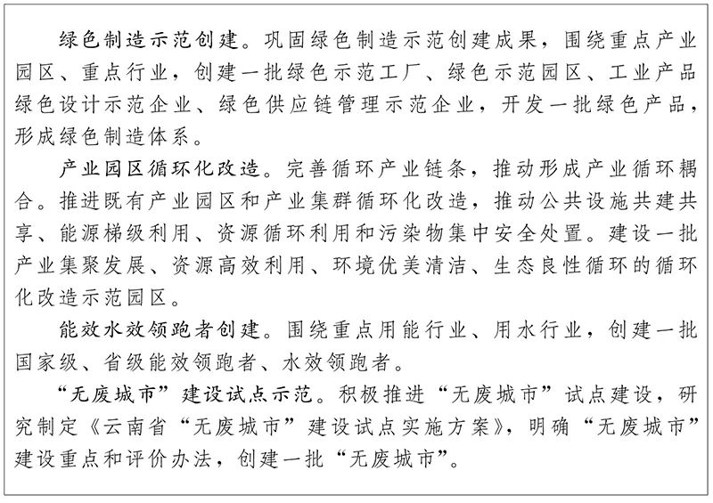 充分發(fā)揮各行業(yè)領(lǐng)域資源優(yōu)勢,圍繞園區(qū)、行業(yè)、企業(yè)、產(chǎn)品、供應(yīng)鏈等全面推進(jìn)綠色示范創(chuàng)建。加強(qiáng)創(chuàng)建標(biāo)準(zhǔn)規(guī)范宣貫,示范創(chuàng)建信息共享。支持園區(qū)、企業(yè)開展國家生態(tài)工業(yè)示范園區(qū)、綠色制造示范、園區(qū)循環(huán)化改造、能效水效領(lǐng)跑者等示范創(chuàng)建活動(dòng)。支持傳統(tǒng)產(chǎn)業(yè)園區(qū)應(yīng)用資源節(jié)約和替代技術(shù)、能量梯級(jí)利用技術(shù)、環(huán)保與資源再利用等共性技術(shù),積極開展廢水、廢氣、固體廢棄物等資源綜合利用技改升級(jí)。按照用地集約化、原料無害化、生產(chǎn)潔凈化、廢物資源化、能源低碳化原則推進(jìn)綠色工廠創(chuàng)建。鼓勵(lì)企業(yè)開展工業(yè)產(chǎn)品綠色設(shè)計(jì)實(shí)踐,發(fā)揮示范效應(yīng)。探索園區(qū)智慧化管理模式,開展綠色智慧園區(qū)試點(diǎn)建設(shè)。