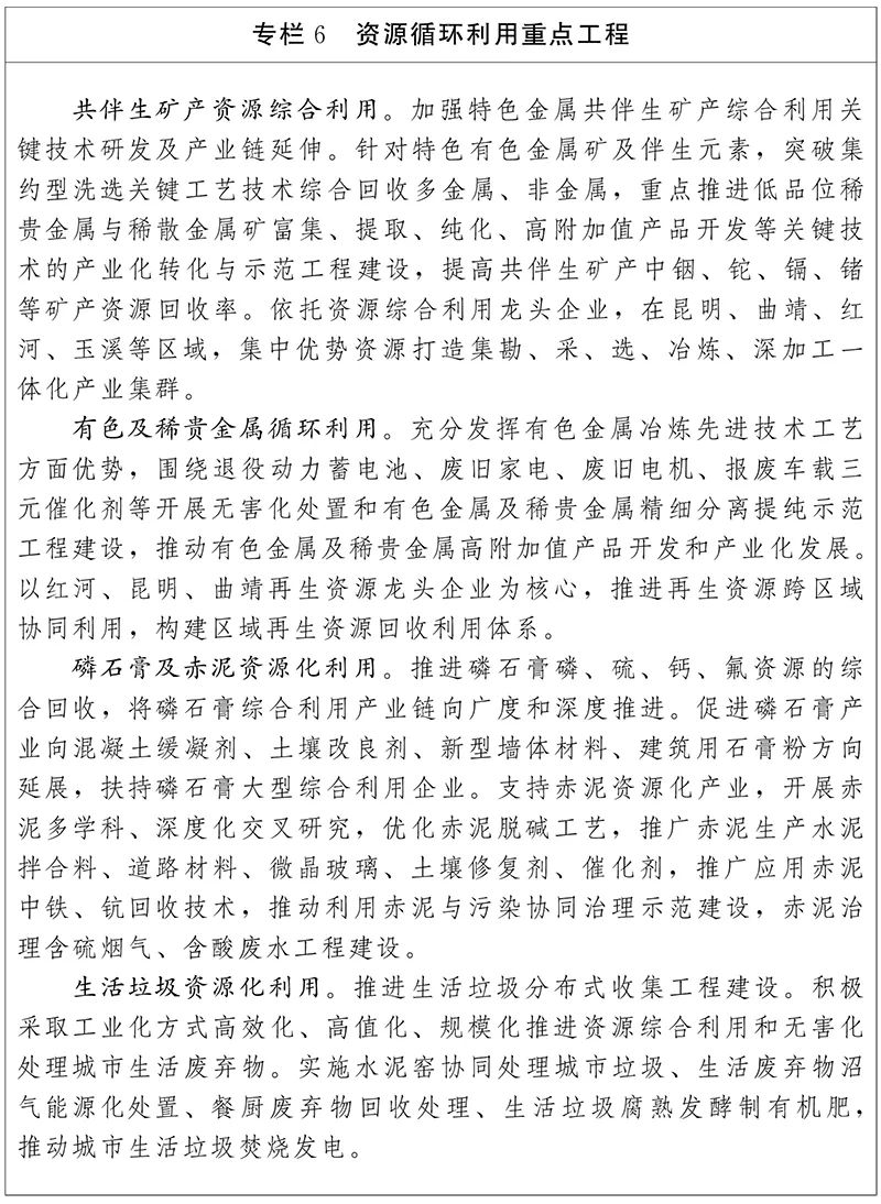 再生資源循環(huán)利用。建設(shè)再生資源產(chǎn)業(yè)集聚區(qū),推進(jìn)再生資源跨區(qū)域協(xié)同利用。在電器電子產(chǎn)品、汽車領(lǐng)域等行業(yè)開展生產(chǎn)者責(zé)任延伸試點(diǎn)示范。以再生資源龍頭企業(yè)為核心,推動(dòng)退役動(dòng)力蓄電池、廢舊家電、廢舊電機(jī)、報(bào)廢機(jī)動(dòng)車、廢塑料、廢舊輪胎、玻璃纖維、建筑垃圾等資源循環(huán)利用和廢催化劑中稀貴金屬精細(xì)分離提純,加大資源綜合利用產(chǎn)品推廣力度,推廣一批先進(jìn)適用的建筑垃圾分揀、剔除、粉碎和建筑垃圾夯擴(kuò)超短異型樁施工、建筑垃圾砌塊、建筑垃圾墻地磚等技術(shù)和裝備。開展“城市礦山”綜合利用示范工程。推進(jìn)各類園區(qū)進(jìn)行循環(huán)化改造,實(shí)現(xiàn)生產(chǎn)過程耦合。