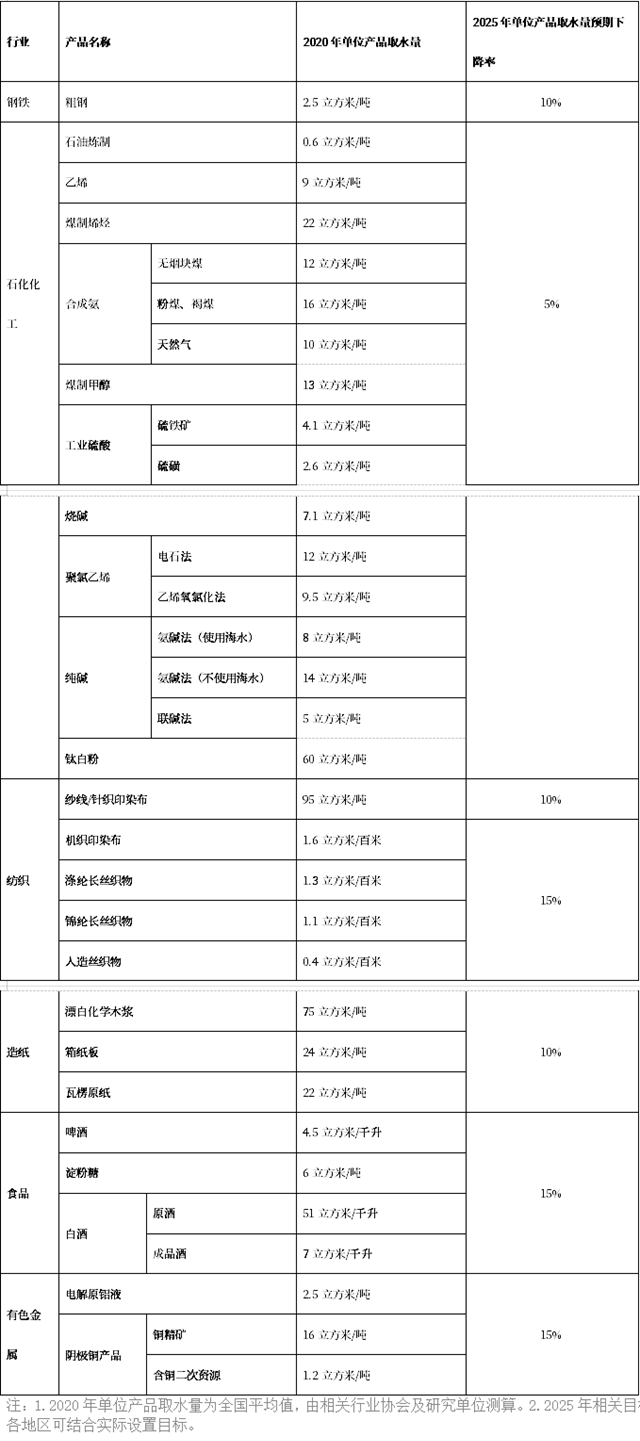 重點(diǎn)行業(yè)主要產(chǎn)品水效提升預(yù)期目標(biāo):