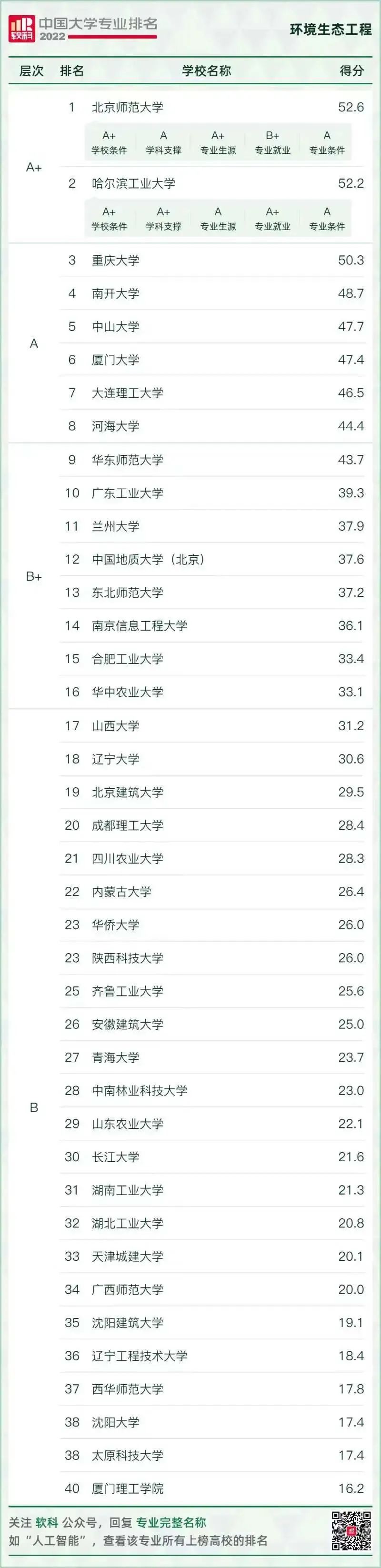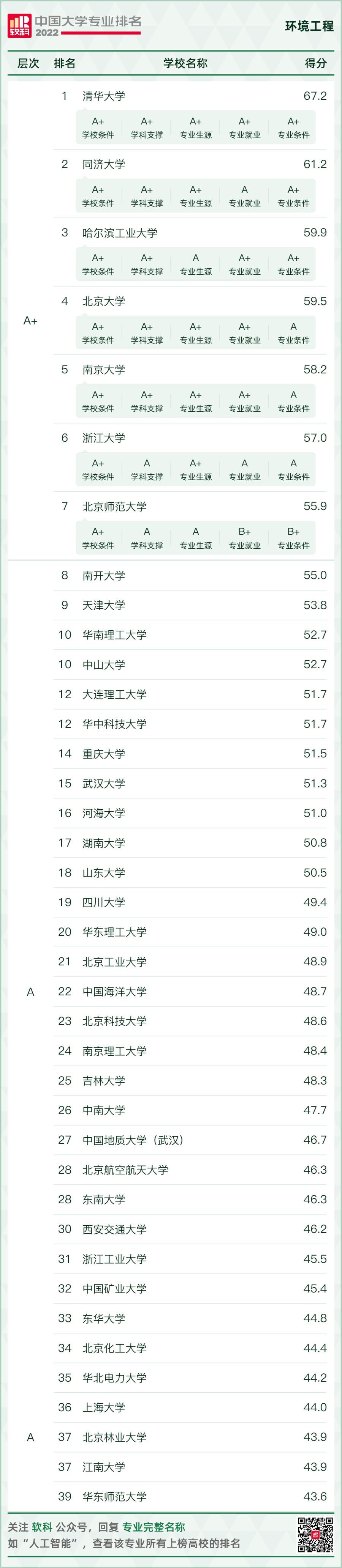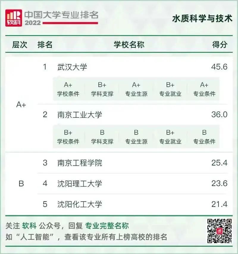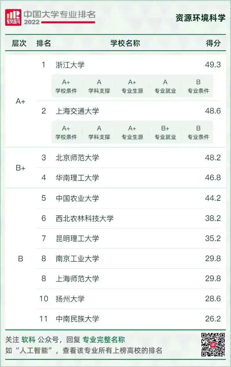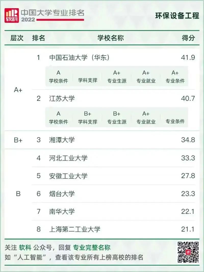 環(huán)境科學與工程類專業(yè)排名情況如下: