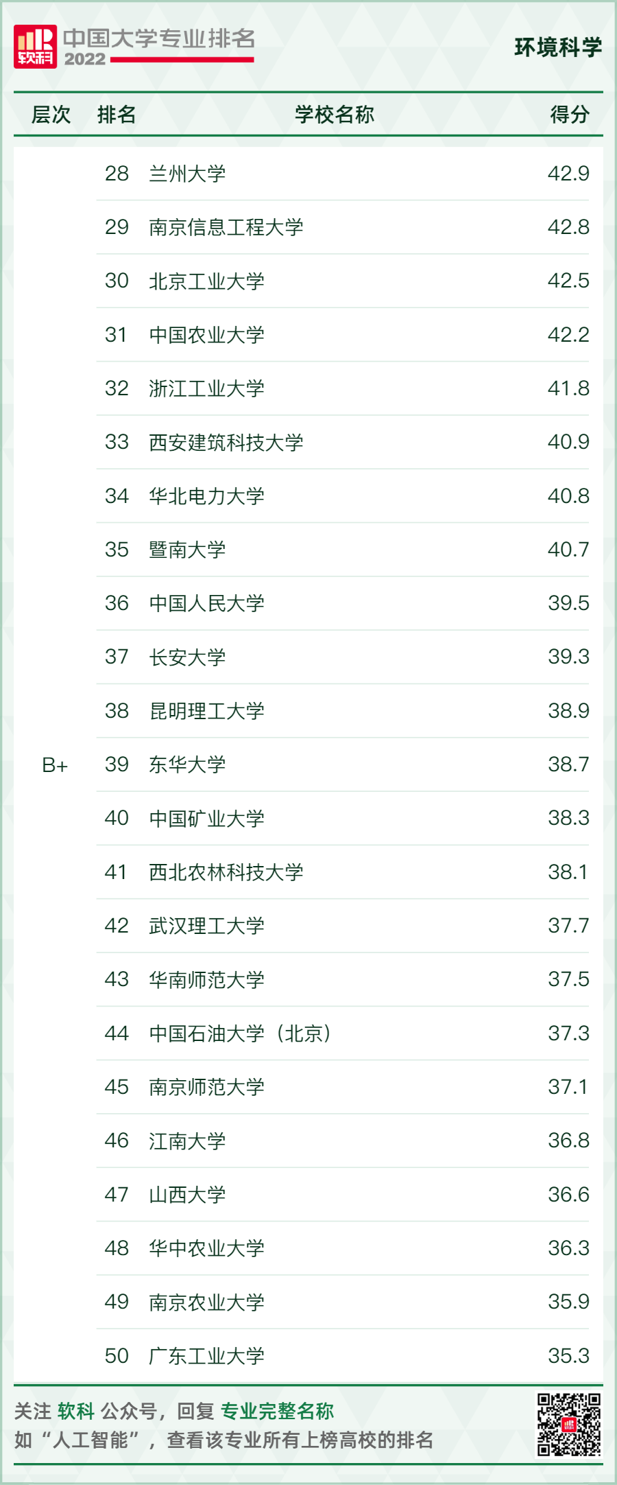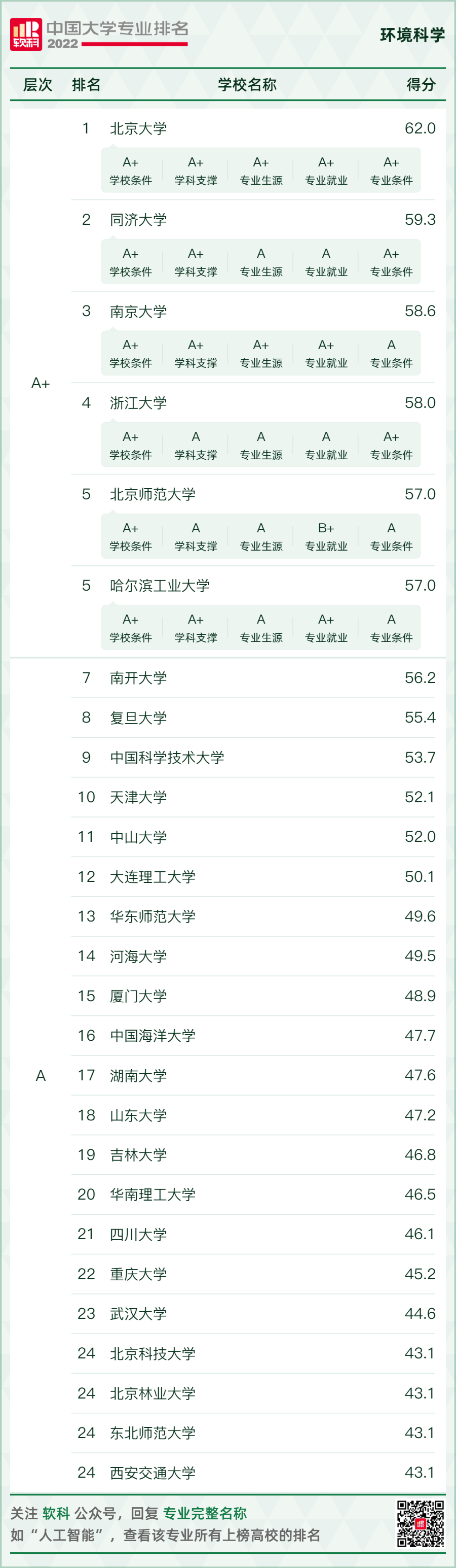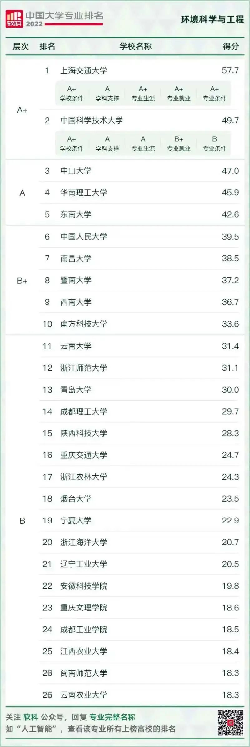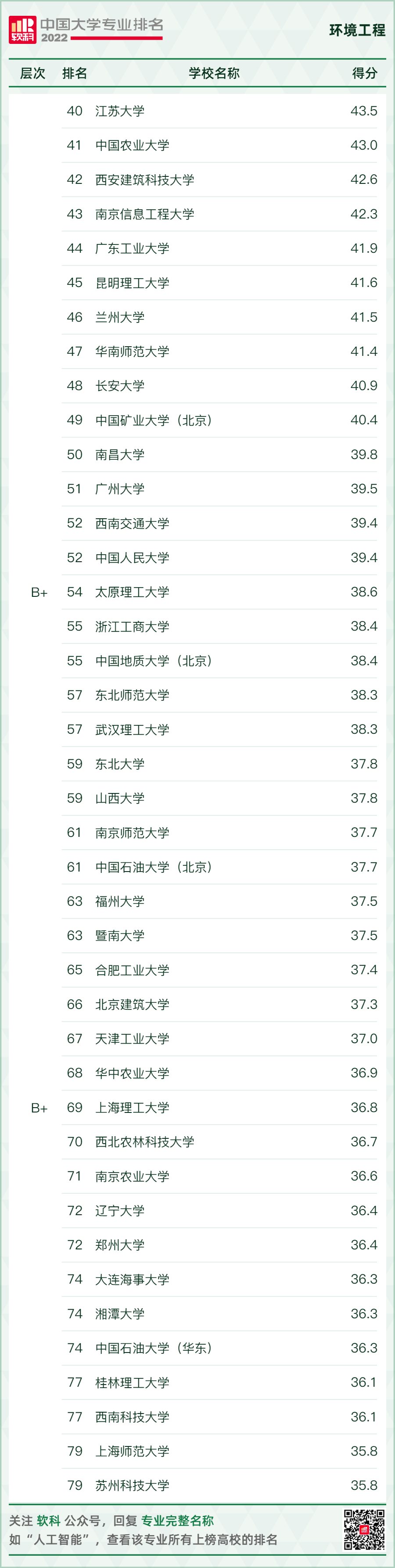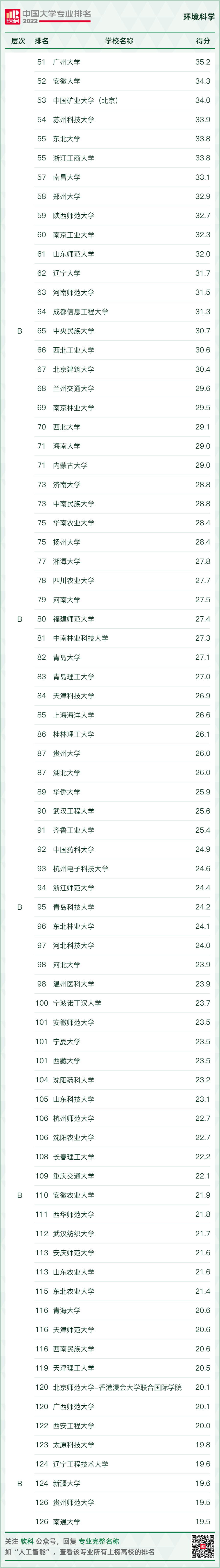 環(huán)境科學與工程類專業(yè)排名情況如下: