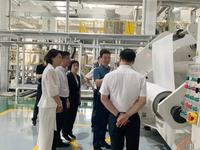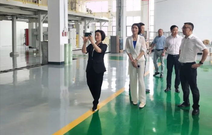 竺主席及徐主任一行實地參觀了浙江易膜新材料科技有限公司廠區(qū)和生產現(xiàn)場,深入了解建設情況和生產經(jīng)營情況,現(xiàn)場參觀了數(shù)字化制膜線和卷膜線,以及“領雁”重點研發(fā)攻關項目的海水淡化膜新產線,并對該項目一期工作順利投產給予充分肯定。