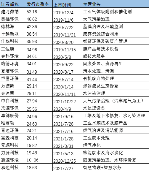 上周,E20水網(wǎng)固廢網(wǎng)發(fā)布了《93家創(chuàng)業(yè)板、科創(chuàng)板環(huán)保企業(yè)市值大對(duì)比》。今天再試著對(duì)比下與企業(yè)市值相關(guān)的發(fā)行市盈率。