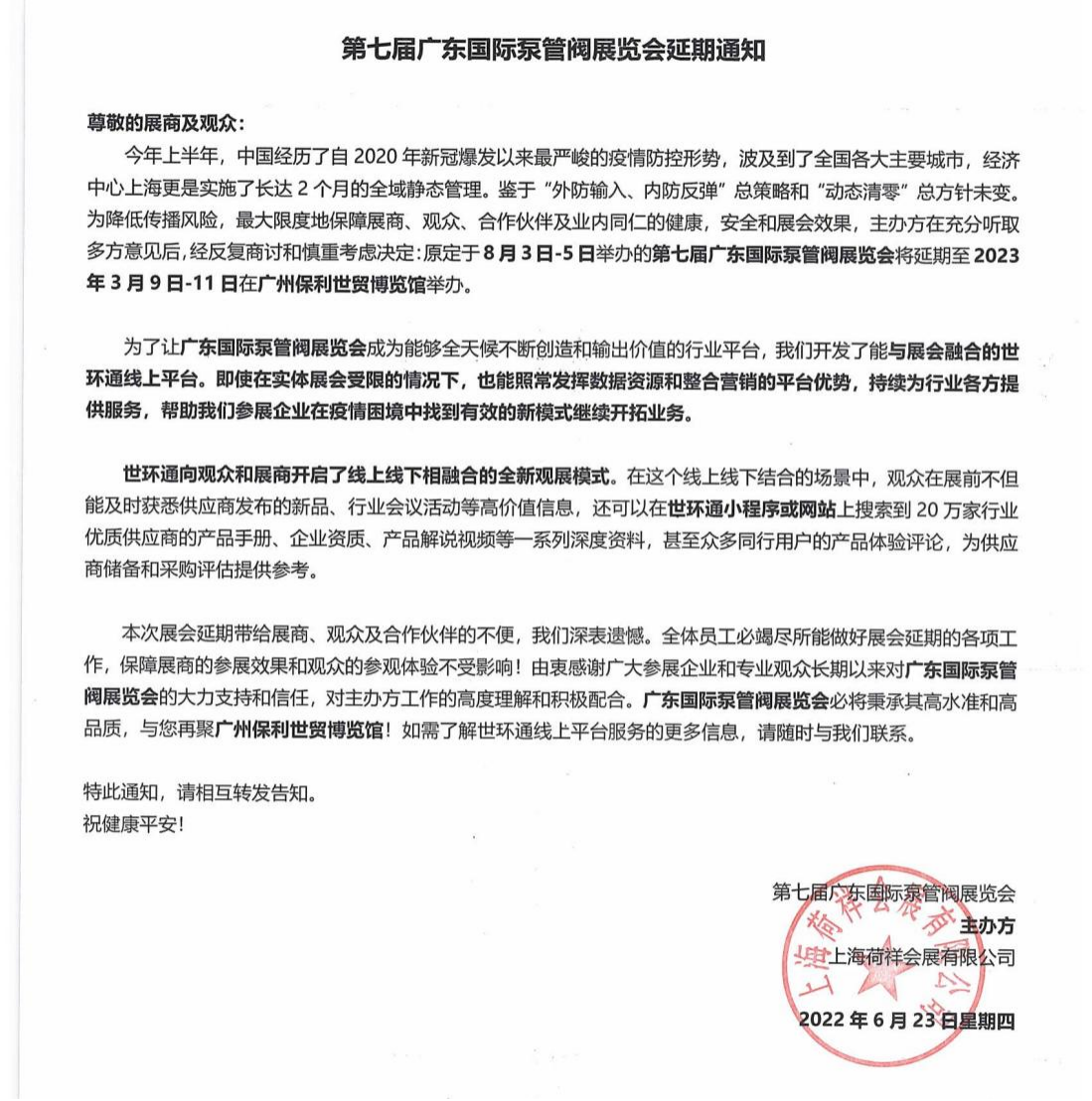 第七屆廣東泵閥展將延期舉辦,世環(huán)通平臺(tái)服務(wù)重磅上線!