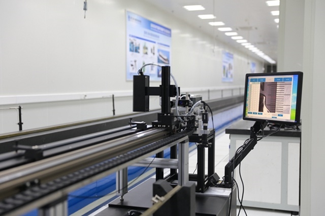 針對(duì)油水界面探測(cè)儀檢測(cè)方法落后問題,國(guó)家海洋油氣資源開發(fā)裝備產(chǎn)業(yè)計(jì)量中心聯(lián)合舟山市質(zhì)量技術(shù)監(jiān)督檢測(cè)研究院組成了專家組,深入開展實(shí)地調(diào)查研究。技術(shù)專家陳歡扎根實(shí)地,依托在長(zhǎng)度精密測(cè)量領(lǐng)域的多年技術(shù)經(jīng)驗(yàn)積累,整合視覺檢測(cè)、機(jī)電自動(dòng)化技術(shù),積極攻關(guān),最終研發(fā)一套針對(duì)油水界面探測(cè)儀的全自動(dòng)檢測(cè)系統(tǒng),實(shí)現(xiàn)了測(cè)量過程自動(dòng)化,測(cè)量數(shù)據(jù)自動(dòng)記錄,一鍵生成報(bào)告。系統(tǒng)研發(fā)自動(dòng)測(cè)量功能,上位機(jī)中選擇油水界面測(cè)量?jī)x的規(guī)格,一鍵自動(dòng)檢測(cè)運(yùn)行,伺服電機(jī)帶動(dòng)機(jī)器視覺自動(dòng)識(shí)別模組在高精度導(dǎo)軌上運(yùn)行,根據(jù)預(yù)置點(diǎn)位自動(dòng)識(shí)別圖像中線紋位置,結(jié)合圖像算法和激光干涉儀標(biāo)準(zhǔn)數(shù)據(jù)實(shí)現(xiàn)精確檢測(cè);系統(tǒng)研發(fā)檢測(cè)數(shù)據(jù)實(shí)時(shí)自動(dòng)記錄功能,對(duì)于預(yù)置點(diǎn)位的數(shù)據(jù),上位機(jī)系統(tǒng)通過算法處理獲取準(zhǔn)確檢測(cè)數(shù)據(jù),并實(shí)現(xiàn)軟件中自動(dòng)記錄功能。系統(tǒng)研發(fā)報(bào)告一鍵生成功能,根據(jù)應(yīng)用實(shí)際需求,定制化報(bào)告,可一鍵生成導(dǎo)出。檢測(cè)系統(tǒng)操作方便,檢測(cè)效率高,大幅度縮短油水界面探測(cè)儀的檢測(cè)時(shí)間,助力海洋經(jīng)濟(jì)快速發(fā)展。系統(tǒng)服務(wù)于各類檢測(cè)機(jī)構(gòu)、企業(yè),滿足油水界面探測(cè)儀的檢測(cè)需求。助力了計(jì)量檢測(cè)單位、企業(yè)等檢測(cè)工作的數(shù)字化、高效化。