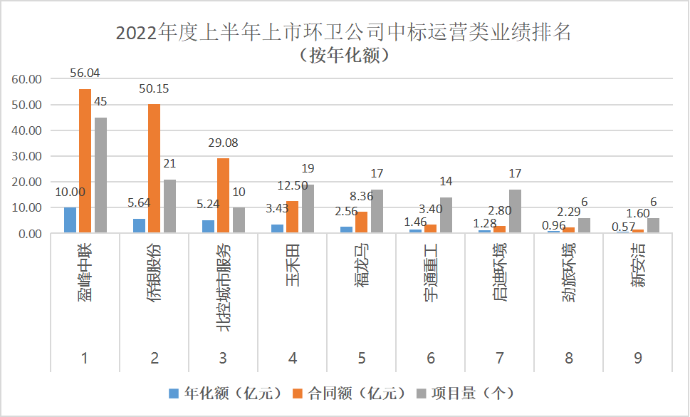附2:2022年度上半年環(huán)衛(wèi)上市公司運營類項目中標業(yè)績排名