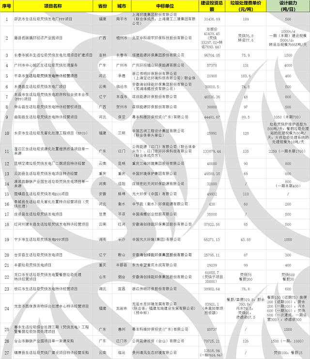2022年上半年焚燒市場共計(jì)釋放27個(gè)生活垃圾焚燒項(xiàng)目,如有遺漏歡迎補(bǔ)充! (數(shù)據(jù)來源:中國固廢網(wǎng))