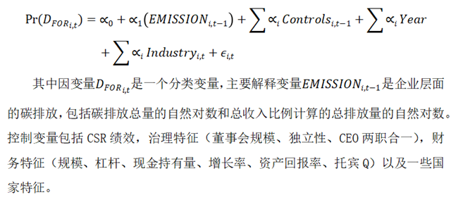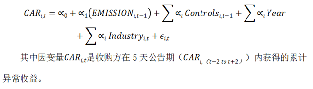 具體地,作者主要提出以下幾個問題:(1)碳風(fēng)險對并購決策是否重要,尤其是跨境目標(biāo)的選擇?(2a)收購方的碳風(fēng)險是否與收購公告的市場反應(yīng)有關(guān)?(2b)排放對收購公告回報的影響是否因公司的 CSR 聲譽而減弱或增強?