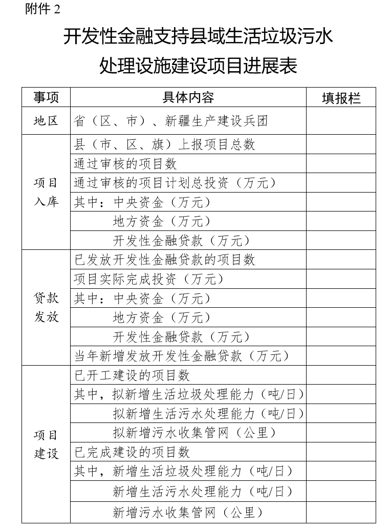 住房和城鄉(xiāng)建設部、國家開發(fā)銀行建立工作協(xié)調機制,共同開展縣域生活垃圾污水處理設施建設相關研究,優(yōu)先選取積極性高、有條件的地區(qū)開展試點工作,探索市場化、可持續(xù)的項目包裝和融資支持模式,共同培育孵化大型專業(yè)化的建設運營主體。省級住房和城鄉(xiāng)建設部門、國家開發(fā)銀行省(區(qū)、市)分行要建立工作協(xié)調機制,及時共享開發(fā)性金融支持縣域生活垃圾污水處理設施建設項目信息及調度情況,協(xié)調解決項目融資、建設中存在的問題和困難;每年12月底前將開發(fā)性金融支持縣域生活垃圾污水處理設施建設項目進展表(附件2)分別報住房和城鄉(xiāng)建設部、國家開發(fā)銀行。