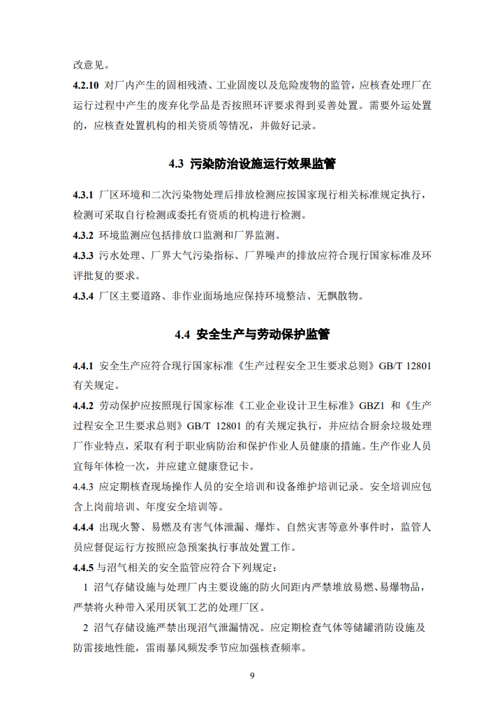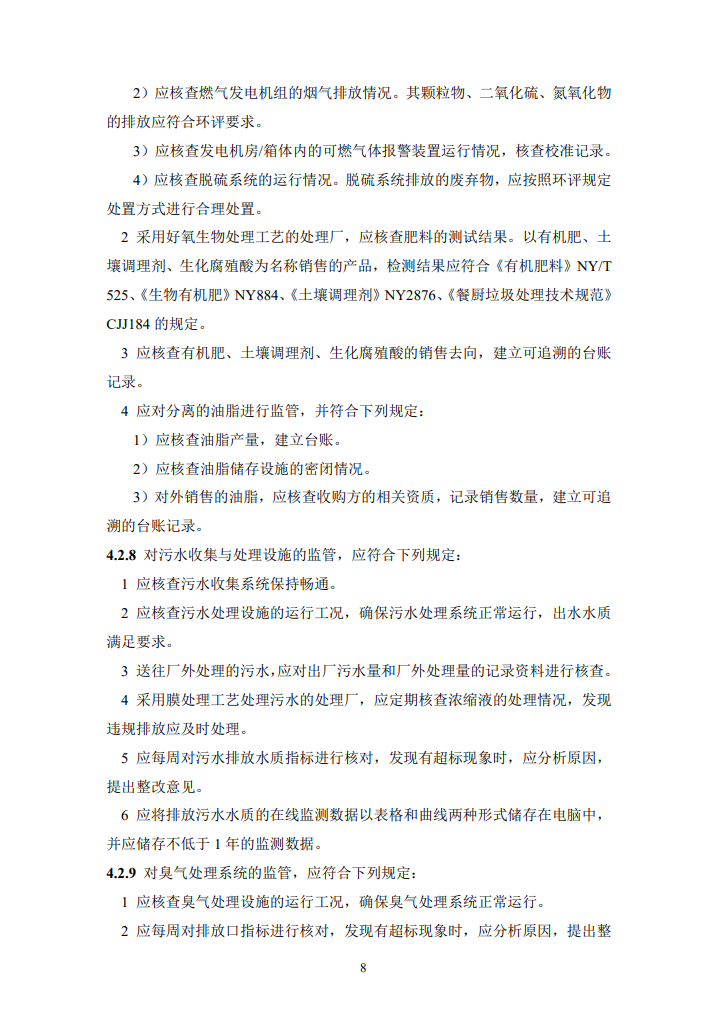 其中,主處理采用厭氧消化工藝時(shí),應(yīng)對厭氧消化系統(tǒng)、沼氣凈化及存儲設(shè)施的運(yùn)行進(jìn)行監(jiān)管,并符合下列規(guī)定:
