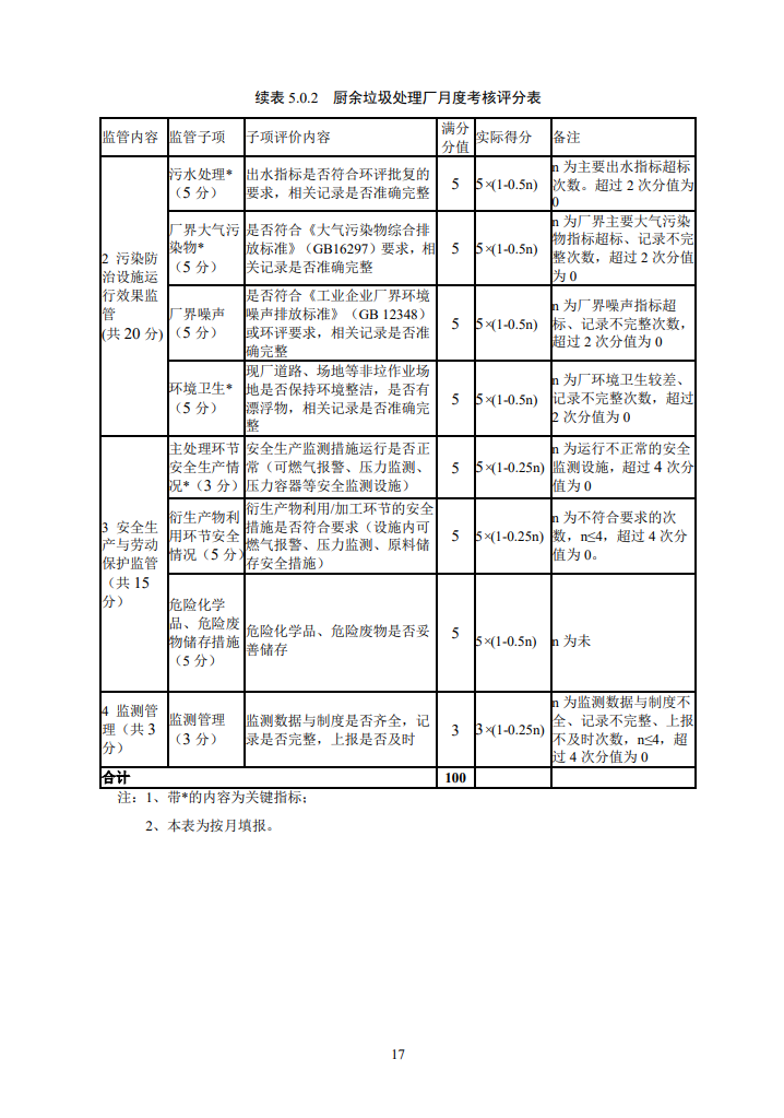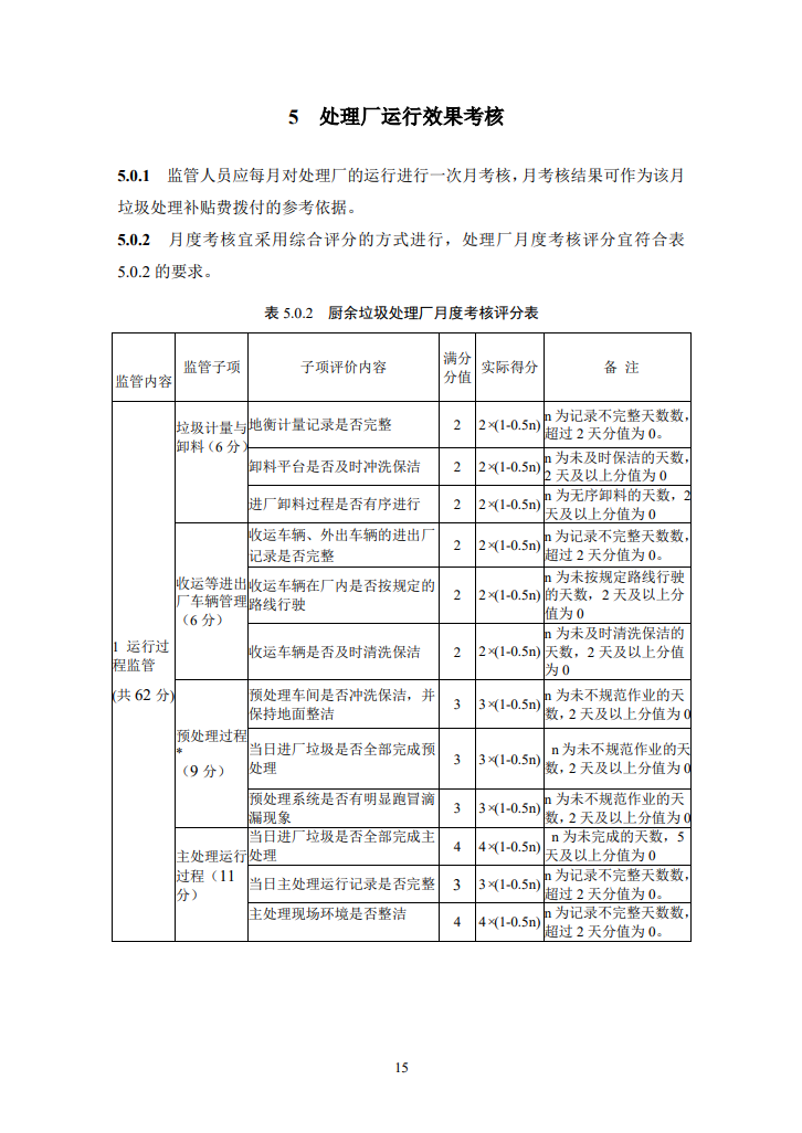 標(biāo)準(zhǔn)指出,監(jiān)管人員應(yīng)每月對處理廠的運(yùn)行進(jìn)行一次月考核,月考核結(jié)果可作為該月垃圾處理補(bǔ)貼費(fèi)撥付的參考依據(jù)。