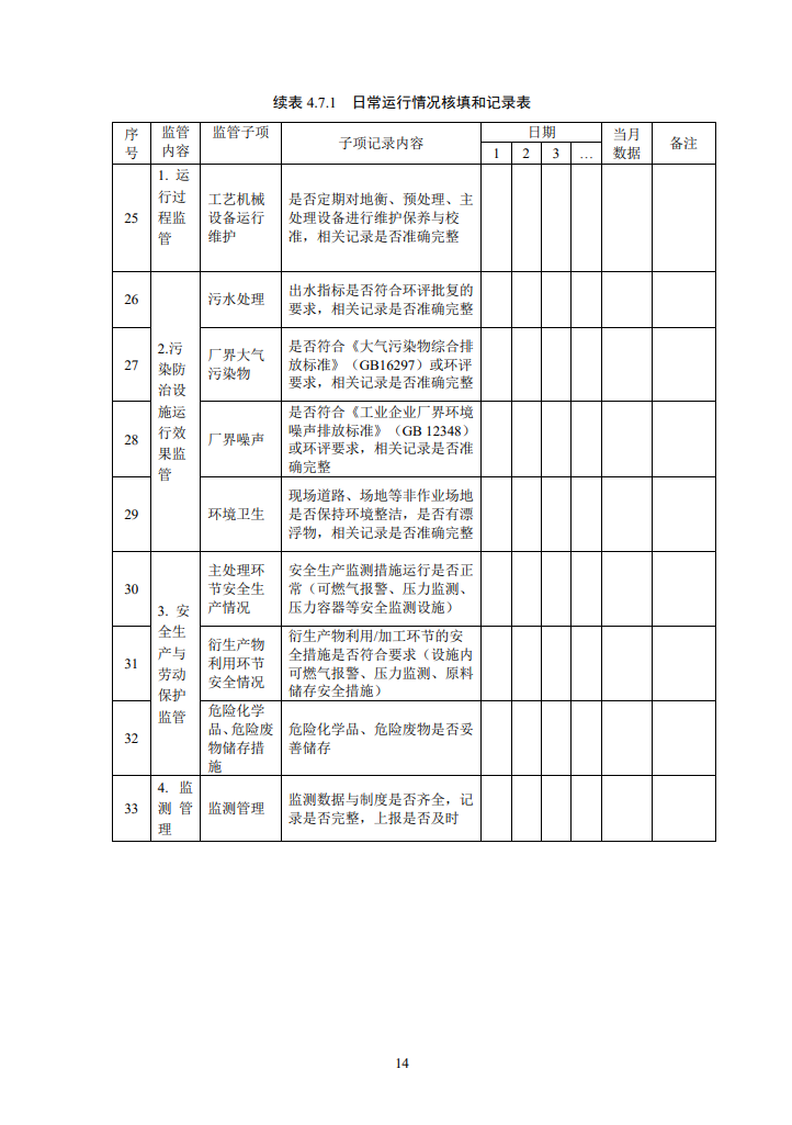 標(biāo)準(zhǔn)指出,處理廠的監(jiān)管內(nèi)容應(yīng)包括處理廠生產(chǎn)運(yùn)行全過程、污染防治設(shè)施運(yùn)行效果、安全生產(chǎn)與勞動保護(hù)、監(jiān)測管理、資料管理等。尤其對下列情況應(yīng)實(shí)施重點(diǎn)監(jiān)管: