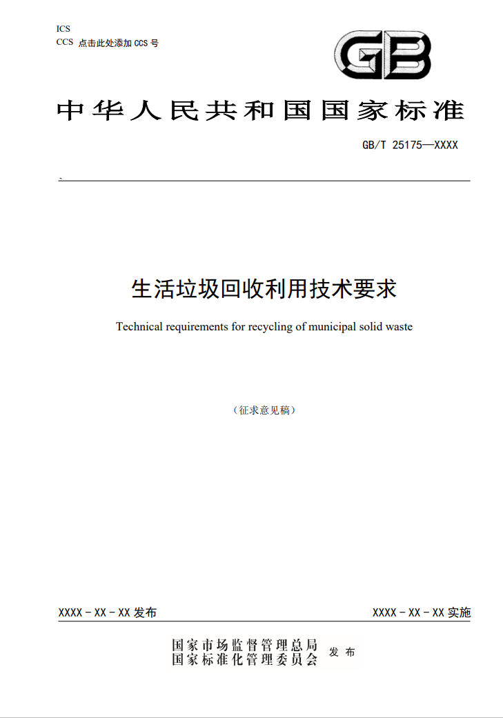 另外標(biāo)準(zhǔn)還對(duì)生活垃圾回收利用過程中的安全生產(chǎn)、環(huán)境保護(hù)和勞動(dòng)衛(wèi)生做出了要求,并在附錄中提供了“可回收物回收率計(jì)算方法”、“可回收物有效回收率計(jì)算方法”、“可回收物再生利用率計(jì)算方法”、“家庭廚余垃圾分出率計(jì)算方法”、 “家庭廚余垃圾資源化利用率計(jì)算方法”。