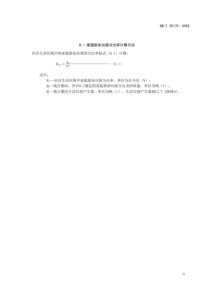 5、家庭廚余垃圾分出率可按附錄B.1計(jì)算。