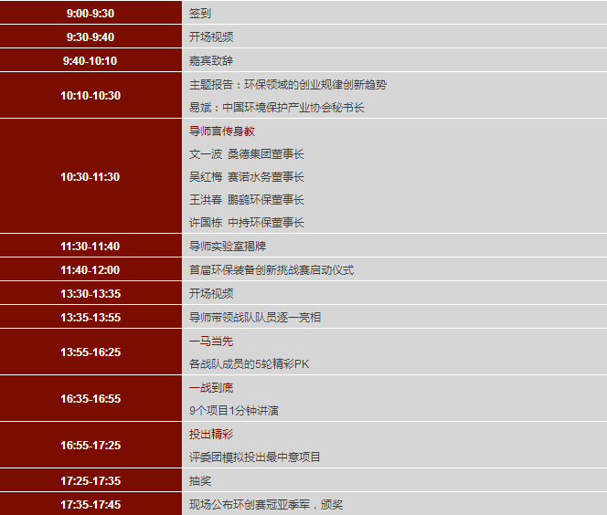 環(huán)保創(chuàng)新創(chuàng)業(yè)大賽日程