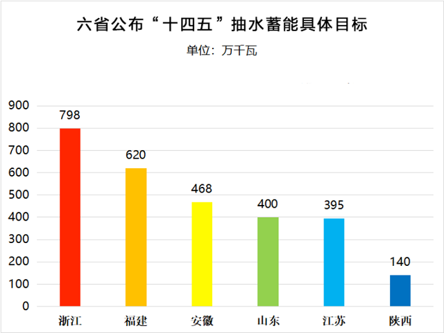 山西、廣東、浙江、安徽、河南、山東、甘肅、黑龍江、湖南、江蘇、江西、寧夏、陜西、貴州、新疆、吉林、青海、福建、廣西、湖北、四川、重慶、內(nèi)蒙古、河北24個省市區(qū)都要求積極發(fā)展抽水蓄能,其中浙江、福建、安徽、山東、江蘇、陜西6省明確“十四五”期間抽水蓄能裝機規(guī)劃目標(biāo),到2025年6省抽水蓄能裝機總量將達(dá)到28.21GW。(注:原文有刪改)