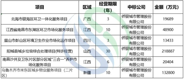 (僑銀股份上半年億級(jí)項(xiàng)目中標(biāo)情況,圖源:中國(guó)固廢網(wǎng))