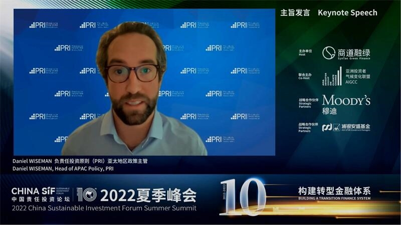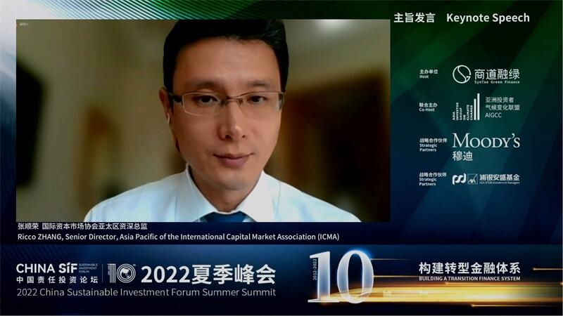 7月12日,由商道融綠主辦、亞洲投資者氣候變化聯(lián)盟(AIGCC)聯(lián)合主辦的2022年中國責(zé)任投資論壇(China SIF)夏季峰會(huì)在線上成功舉行。來自國內(nèi)外的政策制定者、標(biāo)準(zhǔn)制定者、資產(chǎn)所有者、資產(chǎn)管理者、中介機(jī)構(gòu)以及企業(yè)和學(xué)術(shù)界代表共聚一堂,圍繞“構(gòu)建轉(zhuǎn)型金融體系”展開深入討論。