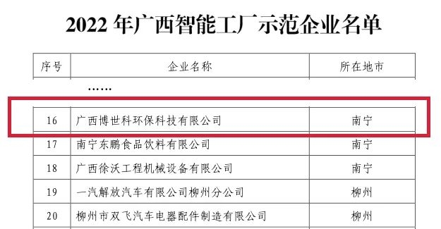 2022年7月12日,廣西壯族自治區(qū)工業(yè)和信息化廳發(fā)布2022年廣西智能工廠示范企業(yè)名單,博世科成功入選。自治區(qū)工信部門自2018年起組織開(kāi)展廣西智能工廠示范企業(yè)認(rèn)定工作,旨在篩選出一批智能制造標(biāo)桿示范企業(yè),帶動(dòng)全區(qū)智能制造水平提升。