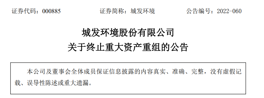 據(jù)公告顯示,終止本次重大資產(chǎn)重組的原因是城發(fā)環(huán)境自籌劃本次重大資產(chǎn)重組事項(xiàng)以來,嚴(yán)格按照相關(guān)法律法規(guī)的要求,與交易對方及其他相關(guān)雙方持續(xù)進(jìn)行磋商與研討,并根據(jù)磋商結(jié)果積極推進(jìn)相關(guān)盡職調(diào)查、審計(jì)、信息披露、內(nèi)部決策等工作。鑒于本次重大重組方案論證歷時(shí)較長,相關(guān)市場環(huán)境較本次交易籌劃之初發(fā)生較大變化。經(jīng)審慎研究分析,為切實(shí)維護(hù)城發(fā)環(huán)境及全體股東利益,經(jīng)與啟迪環(huán)境協(xié)商,雙方?jīng)Q定終止本次重大資產(chǎn)重組事項(xiàng)。根據(jù)法律法規(guī)及公司章程規(guī)定,經(jīng)雙方充分溝通及友好協(xié)商,城發(fā)環(huán)境董事會經(jīng)審慎研究后,依法履行了相關(guān)審議程序,終止本次重大資產(chǎn)重組。