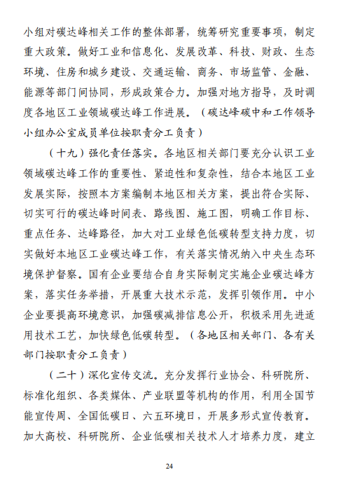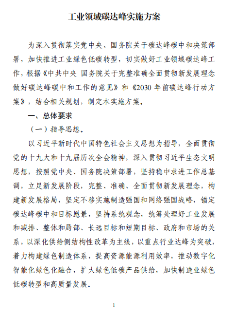 關注 | 工信部、發(fā)改委、環(huán)境部聯(lián)合印發(fā)工業(yè)領域碳達峰實施方案