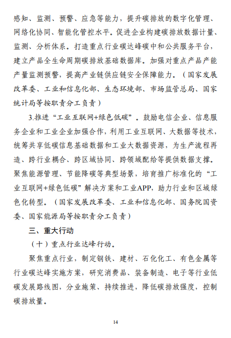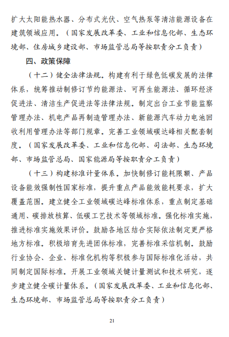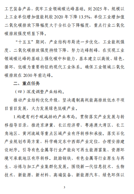 工業(yè)和信息化部 國家發(fā)展改革委 生態(tài)環(huán)境部關于印發(fā)工業(yè)領域碳達峰實施方案的通知