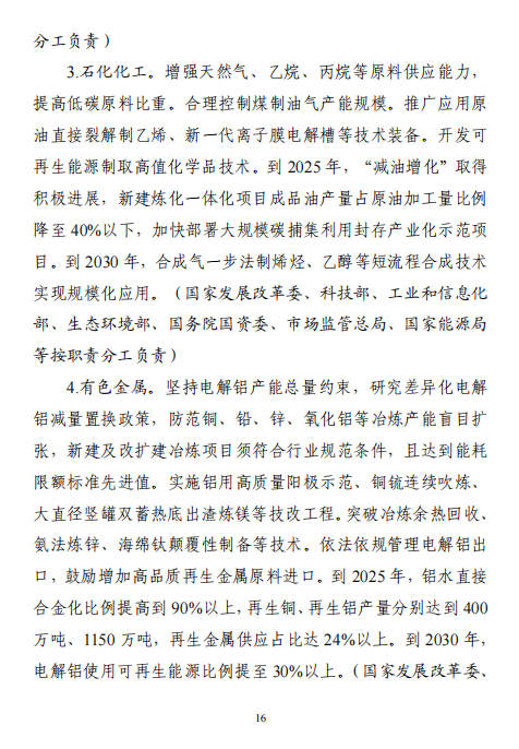 “十五五”期間,產(chǎn)業(yè)結構布局進一步優(yōu)化,工業(yè)能耗強度、二氧化碳排放強度持續(xù)下降,努力達峰削峰,在實現(xiàn)工業(yè)領域碳達峰的基礎上強化碳中和能力,基本建立以高效、綠色、循環(huán)、低碳為重要特征的現(xiàn)代工業(yè)體系。確保工業(yè)領域二氧化碳排放在2030年前達峰。