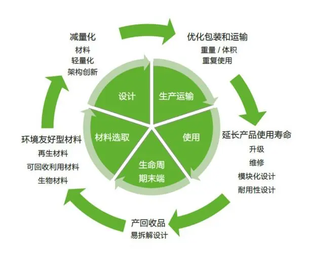 通過(guò)對(duì)設(shè)計(jì)結(jié)構(gòu)的改進(jìn),輕量化設(shè)計(jì),材料循環(huán)回收利用等,從而減少自然資源的使用,可從生產(chǎn)加工、消費(fèi)使用、用后遺棄等方面全面減少對(duì)生態(tài)的破壞。