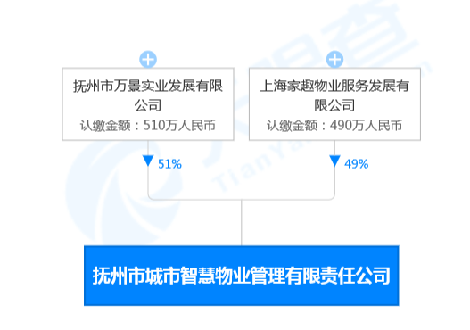 中標供應商撫州市城市智慧物業(yè)管理有限責任公司為“混合所有制企業(yè)”,成立于2022年1月,注冊資本1000萬元,由撫州市城市文化旅游服務發(fā)展集團有限公司全資子公司撫州市萬景實業(yè)發(fā)展有限公司(國有資本)與上海家趣物業(yè)服務發(fā)展有限公司(民營資本)合資組建,其中“國有資本”持股51%