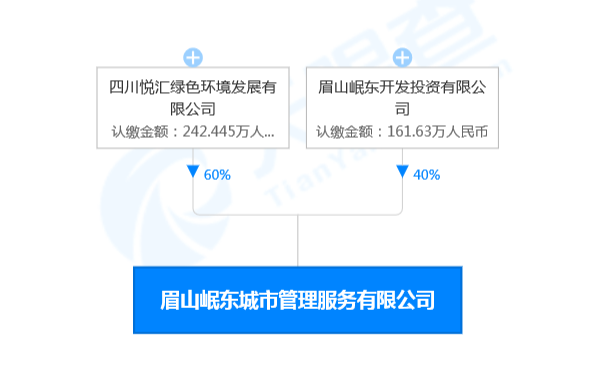 中標供應商眉山岷東城市管理服務有限公司為“混合所有制企業(yè)”,成立于2021年8月,注冊資本404.075萬元,由眉山發(fā)展控股集團全資子公司眉山岷東開發(fā)投資有限公司(國有資本)與四川悅匯綠色環(huán)境發(fā)展有限公司(民營資本)合資組建,其中“民營資本”持股60%。