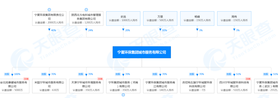 中標供應商寧夏環(huán)保集團城市服務有限公司公司為“混合所有制企業(yè)”,成立于2018年9月,注冊資本5000萬元,由寧夏環(huán)保集團有限責任公司(國有資本)與陜西北斗電科城市管理服務集團有限公司及自然人股東史浩、萬里、楊峰、周偉(民營資本)合資組建,其中“民營資本”持股60%。
