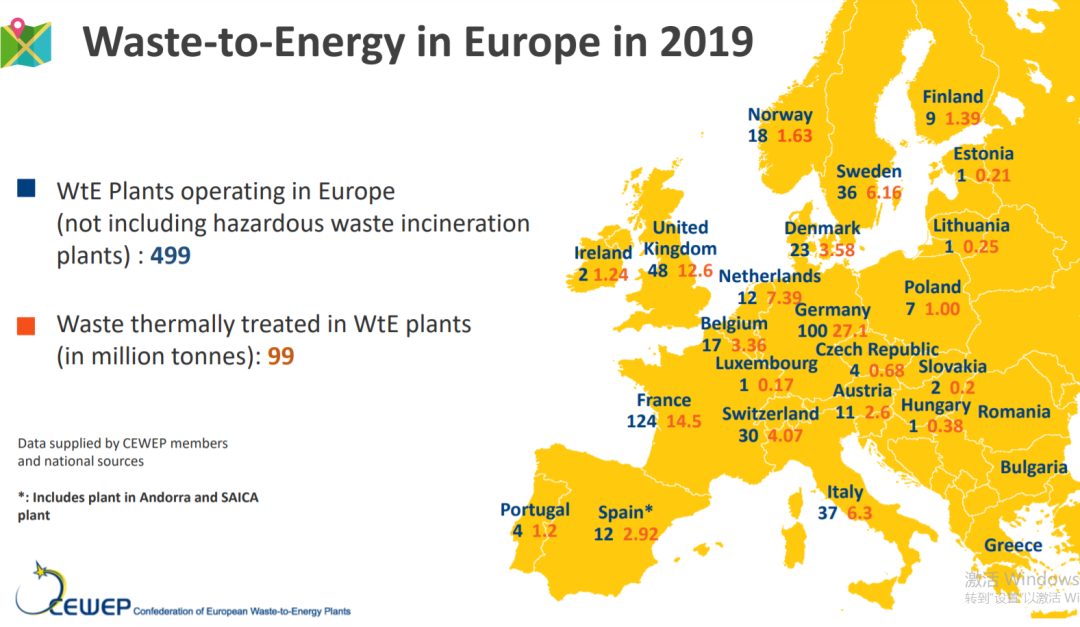 歐洲23國(guó)垃圾焚燒項(xiàng)目及產(chǎn)能分布表