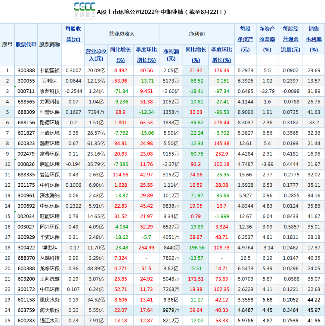 ▼標(biāo)紅色的是數(shù)據(jù)增長(zhǎng)的環(huán)保企業(yè)。圖片來(lái)源:全聯(lián)環(huán)境商會(huì)