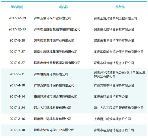 這一時期有太多的不確定性,環(huán)衛(wèi)企業(yè)更名也將更富多元化,因此企業(yè)更名也必將根據(jù)每家公司對行業(yè)發(fā)展的理解認(rèn)識及自身戰(zhàn)略定位而各有側(cè)重。