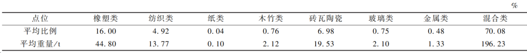 垃圾容重、含水率、熱值檢測(cè)結(jié)果見(jiàn)表1。垃圾組分、化學(xué)指標(biāo)檢測(cè)結(jié)果見(jiàn)表2、3。