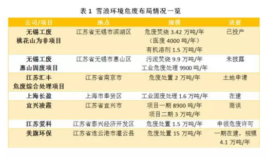 2016年11月,雪浪環(huán)境牽頭發(fā)起設(shè)立江蘇無錫雪浪金茂環(huán)保產(chǎn)業(yè)投資企業(yè)(有限合伙),基金總投資為5億元,雪浪環(huán)境通過設(shè)置企業(yè)并購基金“無錫雪浪金茂”進一步布局危廢市場。2017年7月,無錫雪浪金茂通過股權(quán)轉(zhuǎn)讓的形式收購江蘇愛科65%的股權(quán)。2017年8月,無錫雪浪金茂通過股權(quán)轉(zhuǎn)讓的形式收購美旗環(huán)保20%的股權(quán)。美旗環(huán)保擬投資建設(shè)灌云工業(yè)廢物綜合處理中心項目以處理灌云縣臨港產(chǎn)業(yè)區(qū)內(nèi)危廢為主,兼顧灌云、灌南、徐圩新區(qū)、響水等地危險廢物綜合處理,總設(shè)計處理規(guī)模15萬噸/年,其中工程一期處理規(guī)模4.1萬噸/年。