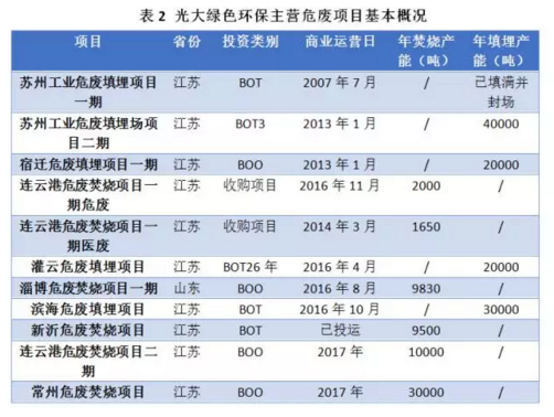光大綠色環(huán)保資質(zhì)齊全,擁有46類危廢中的42類處置資質(zhì),業(yè)務(wù)涵蓋焚燒、填埋、污水和污泥回收處理等多種類型,可以為上游工業(yè)企業(yè)客戶提供一站式環(huán)保服務(wù)。