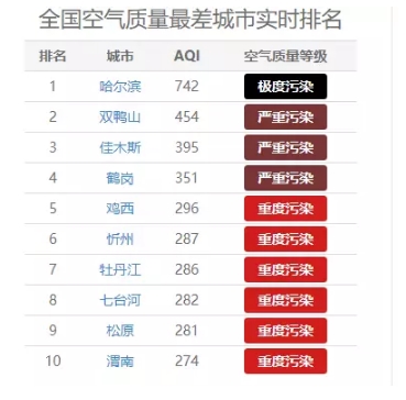 但此后,霧霾狀況幾無好轉(zhuǎn),哈市空氣質(zhì)量依舊多次爆表。
