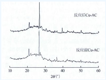 圖 3 反應(yīng)前后Cu-AC 的XRD