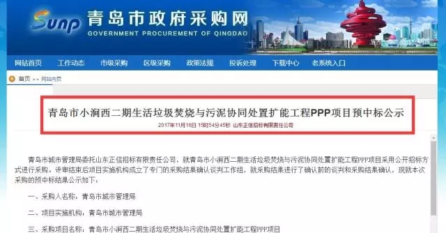 2017年11月16日,南陽(yáng)靜脈產(chǎn)業(yè)園環(huán)保能源熱電聯(lián)產(chǎn)PPP項(xiàng)目、青島市小澗西二期生活垃圾焚燒與污泥協(xié)同處置擴(kuò)能工程兩座垃圾焚燒發(fā)電項(xiàng)目同日發(fā)布中標(biāo)信息,預(yù)中標(biāo)單位均為康恒環(huán)境。