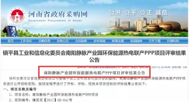 河南省政府采購(gòu)網(wǎng)16日發(fā)布南陽(yáng)靜脈產(chǎn)業(yè)園環(huán)保能源熱電聯(lián)產(chǎn)PPP項(xiàng)目評(píng)審結(jié)果公告,第一中標(biāo)候選人為上??岛悱h(huán)境股份有限公司。
