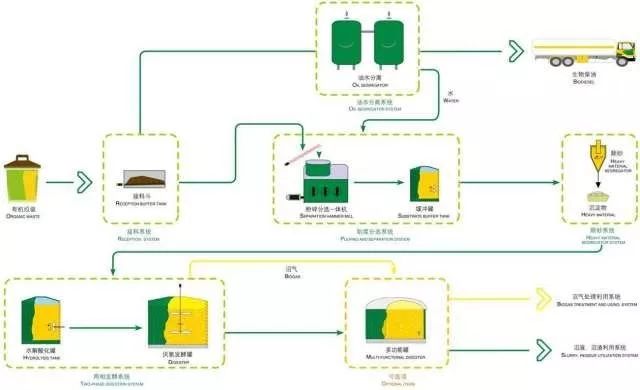 厭氧發(fā)酵技術(shù)的優(yōu)點(diǎn)是垃圾的減量化,資源化處理效果好,產(chǎn)生的沼氣發(fā)電可作為新能源補(bǔ)充現(xiàn)有常規(guī)能源。厭氧發(fā)酵過(guò)程中無(wú)臭氣逸出,發(fā)酵后不會(huì)產(chǎn)生二次污染,社會(huì)大眾的接受程度較高。由于餐廚垃圾的厭氧降解過(guò)程主要是在密閉的反應(yīng)器(發(fā)酵罐)中進(jìn)行的,因此反應(yīng)器的運(yùn)行參數(shù)會(huì)直接影響到厭氧發(fā)酵的過(guò)程。按照反應(yīng)器運(yùn)行的技術(shù)參數(shù),厭氧工藝可分為:中溫工藝與高溫工藝(按照反應(yīng)器內(nèi)溫度劃分);單相工藝與兩相工藝(按照厭氧降解階段劃分);序批次工藝與連續(xù)式工藝(按照進(jìn)料方式劃分)。