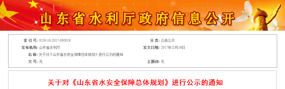 關(guān)于對《山東省水安全保障總體規(guī)劃》進(jìn)行公示的通知