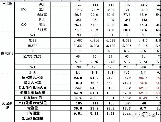 污泥相關(guān)數(shù)據(jù)有:每日剩余污泥排放量,每日脫水機污泥投配泵提升量,脫水后泥餅量,外運泥餅車數(shù);污泥絮凝劑加藥配比,脫水前污泥含水率,脫水后污泥含水率,污泥有機成分,脫水后上清液SS等等。污泥脫水的過程是保障污水處理正常運行的一個環(huán)節(jié),通過每日的數(shù)據(jù)記錄,對污泥脫水能夠?qū)崿F(xiàn)每日追蹤,對污水處理的問題發(fā)現(xiàn)和解決是重要的參考數(shù)據(jù)。