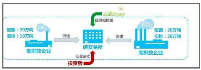 同樣的,在一國內(nèi)部,不能按期實現(xiàn)減排目標(biāo)的企業(yè)也可以從擁有超額配額或排放許可證的企業(yè)那里購買一定數(shù)量的配額或排放許可證以完成自己的減排目標(biāo),排放權(quán)交易市場由此而形成。