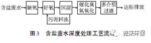 制藥廢水雖然產(chǎn)生量小,但是具有含鹽量高、污染物濃度高、污染嚴重、危害大等特點,采用常規(guī)的物化及生物法處理后難以達標,制藥廢水一直是水處理領(lǐng)域所關(guān)注的熱點和難點。郗金娥等經(jīng)過對某醫(yī)藥廢水的分析和研究,將廢水分為高鹽廢水、高濃度難生化廢水和綜合廢水。對高含鹽廢水采用二次蒸發(fā)系統(tǒng)回收一價鈉鹽,冷凝水進入調(diào)節(jié); 難生化廢水采用臭氧預(yù)處理,出水進入調(diào)節(jié)池。高鹽廢水及難生化廢水經(jīng)過處理后的出水與洗滌廢水、工程生活污水等充分混合,這種綜合廢水再采用兩級厭氧+ 好氧+ 高級氧化進行深度處理。