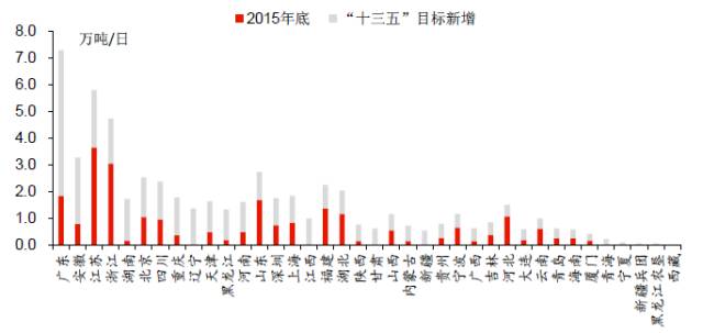 圖3 “十三五”期間各省新增生活垃圾焚燒處理能力目標排序
