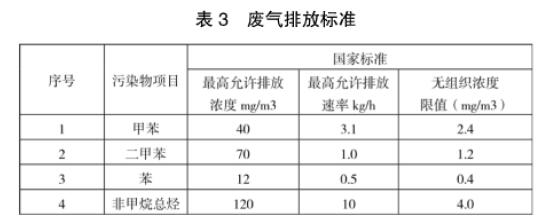 廢氣排放執(zhí)行國(guó)家《大氣污染物綜合排放標(biāo)準(zhǔn)》(GB16297-1996)表3中的(國(guó)家二級(jí),排氣筒標(biāo)高15m)標(biāo)準(zhǔn):