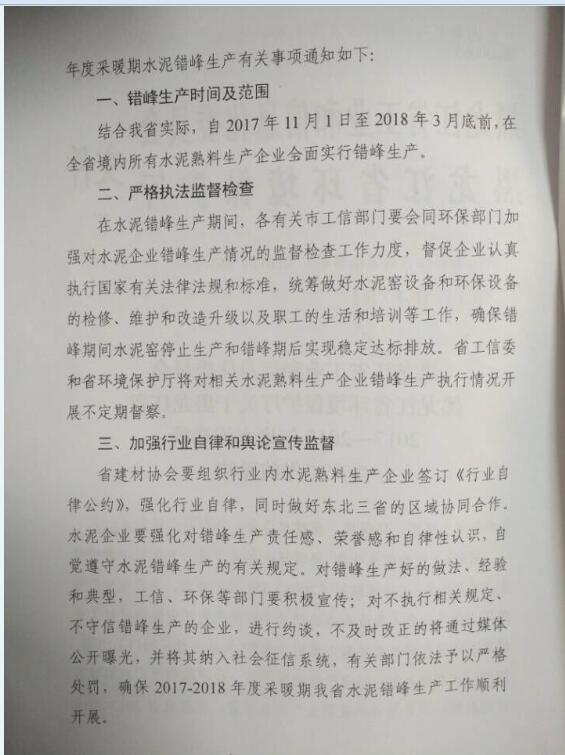 近日,黑龍江省工信委黑龍江省環(huán)保廳聯(lián)合發(fā)布《關(guān)于黑龍江省2017-2018年度水泥錯(cuò)峰生產(chǎn)工作的通知》,將于2017年11月1日至2018年3月底前,在全省境內(nèi)所有水泥熟料生產(chǎn)企業(yè)全面實(shí)行錯(cuò)峰生產(chǎn)。